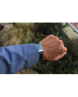 Strap: New leather strap (shown on a 18 cm wrist in photos)